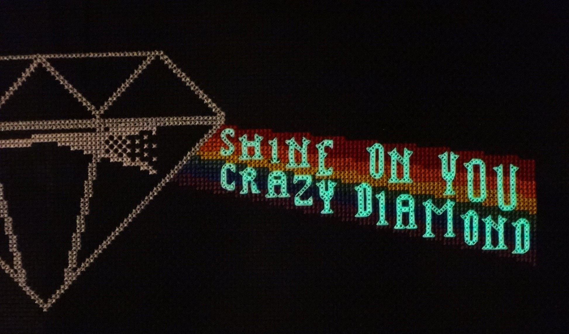 Shine On You Crazy Diamond glow-in-the-dark cross stitch pattern