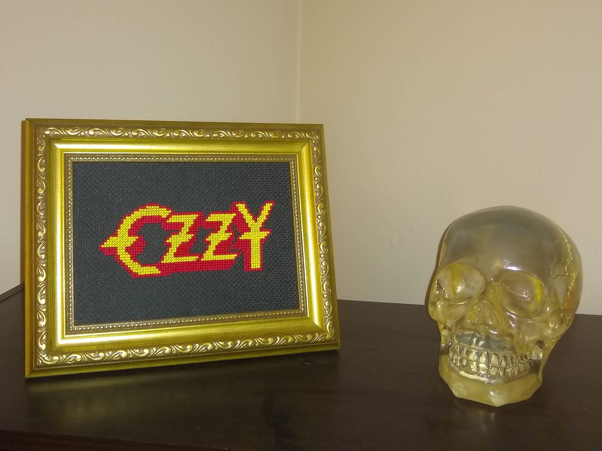 Unleash your inner Prince of Darkness with this iconic cross stitch design of the legendary Ozzy Osbourne logo. Whether you're a longtime fan or stitching a memorial to the late Godfather of Heavy Metal, this piece will make a killer addition to any music-themed decor.